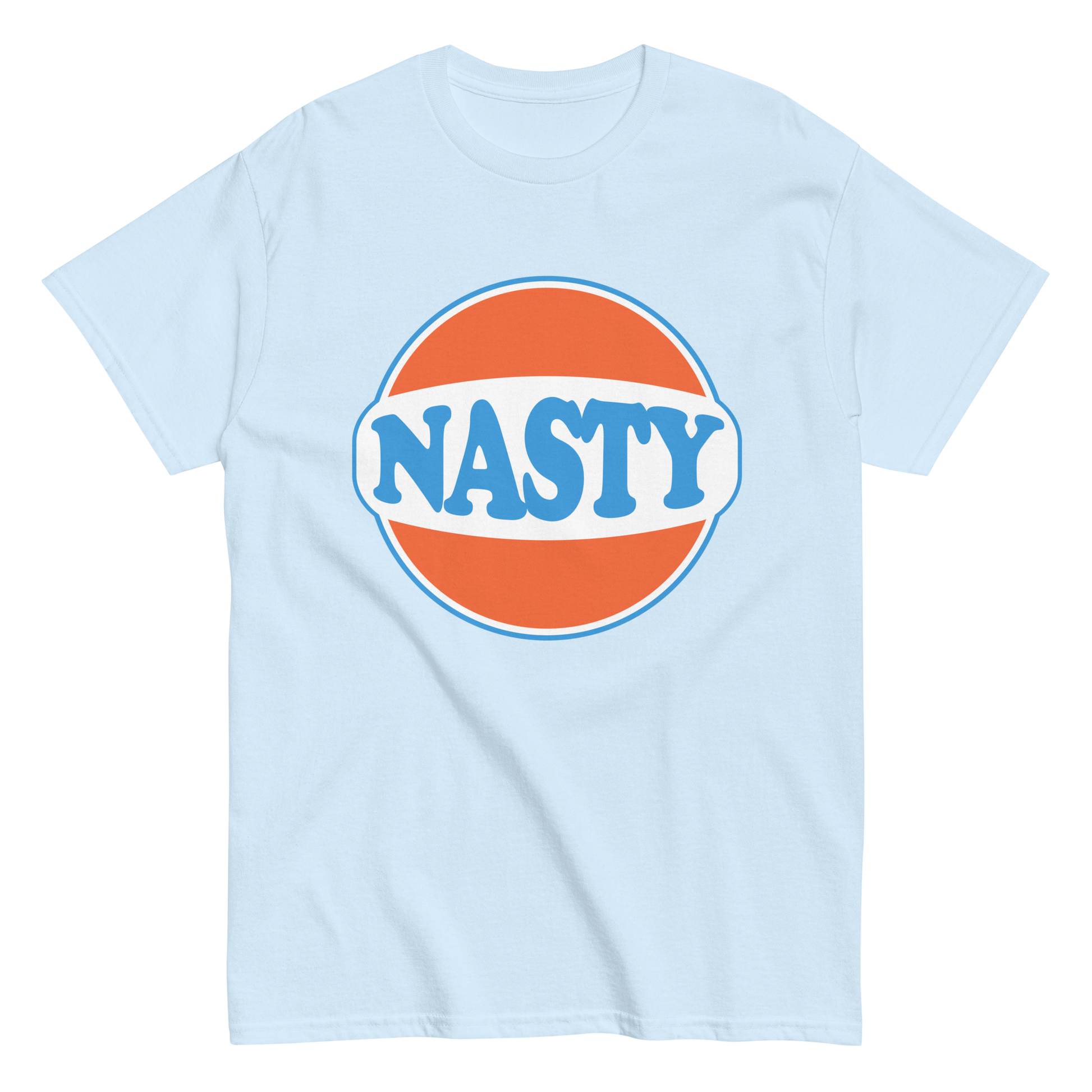 Gulf Oil Company inspired "Nasty" on heavyweight cotton blue shirt. Keeping it classic and Nasty with a "Couples" Style option for this one!